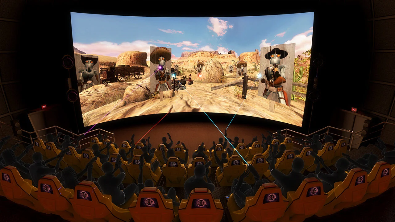 or through fundraisers, which is what happened today. Triple play is this huge indoor waterpark, big hotel, and Arcade/funland place. anyway, at this fundraiser, the first thing we* did was the XD dark ride, which looks like this: